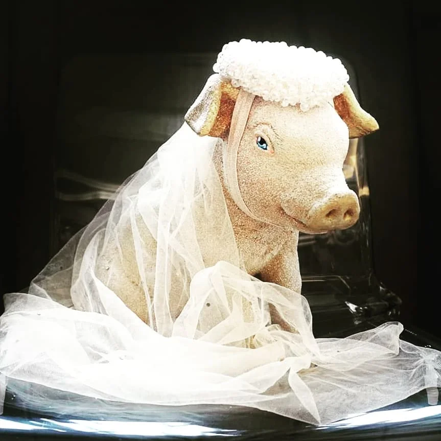 (A gilt pig is a female under the age of 1 year. Gilt also refers to the act of applying gold leaf to a surface. Pepita Regilt is an anagram of Pirate Piglet 😏 )