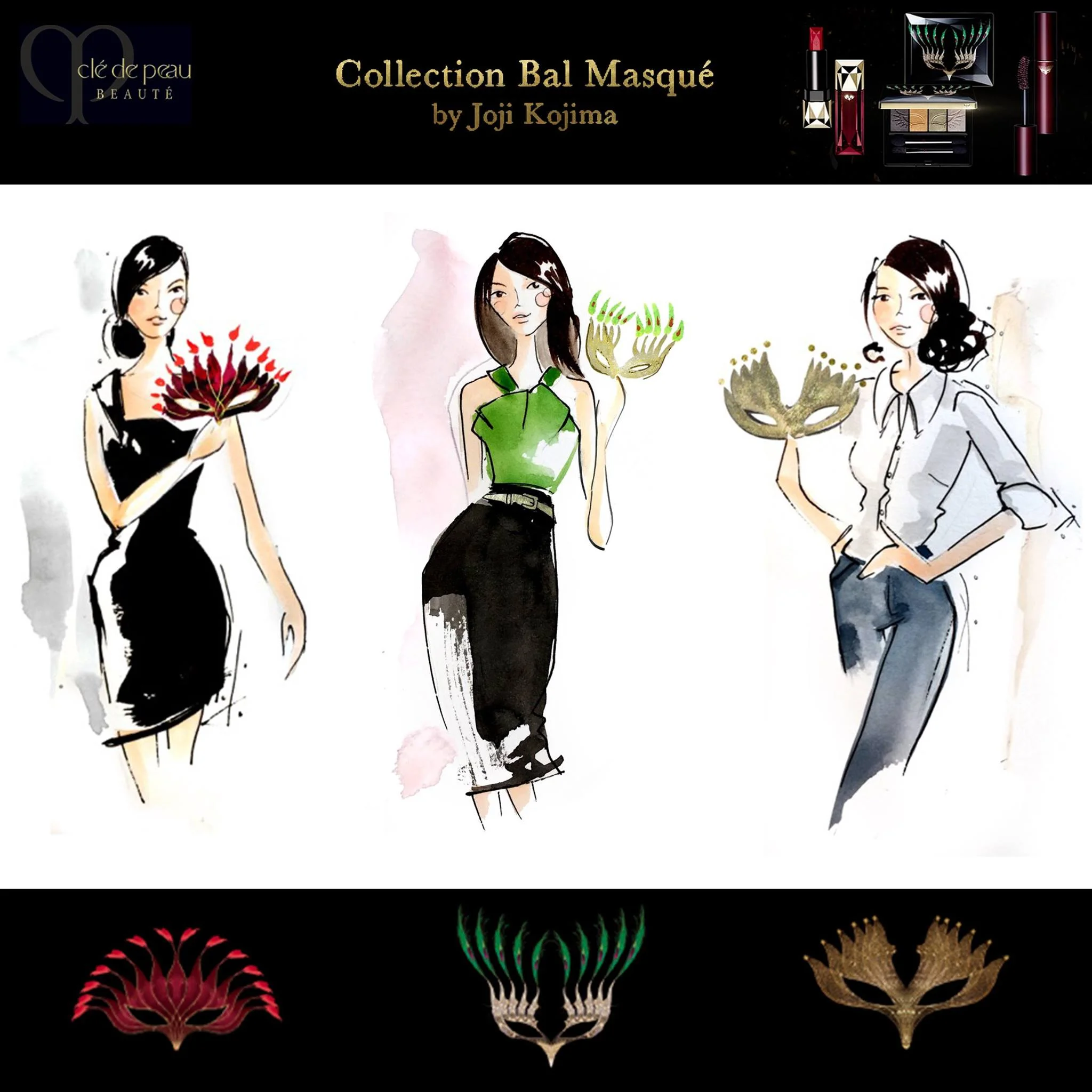 I am doing a series of live fashion illustration events for Clé de peau Beauté over the next few weeks, to promote their beautiful new 2015 holiday collection 'Collection Bal Masqué' by jewellery designer JOJI KOJIMA. I will be at the following venues on these dates, below. Come and say hi and get your portrait done.