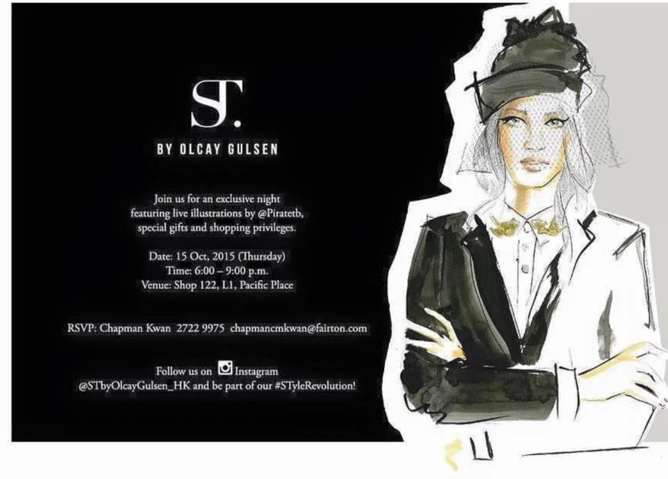 Come and join us for an exclusive evening at ST by Oclay Gulsen, this Thursday, with special gifts, shopping privileges, and live illustration by moi. Invitation below.